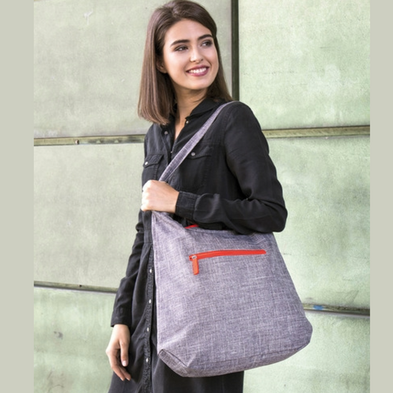 Bags2GO Lady Bag Union Square on moderni ja tilava city-shopperi, joka soveltuu erinomaisesti arkeen, ostoksille, tapahtumiin ja kevyeksi työ- tai vapaa-ajan laukuksi. Hillitty grey melange -väritys yhdistettynä neonvärisiin vetoketjuihin tuo laukkuun raikkaan ja trendikkään ilmeen.