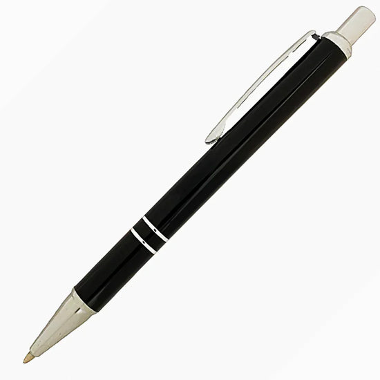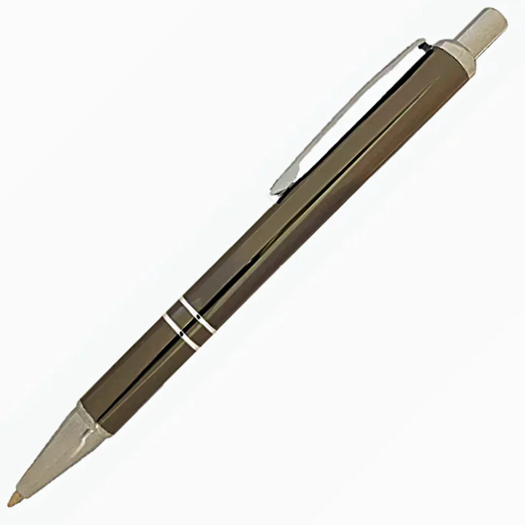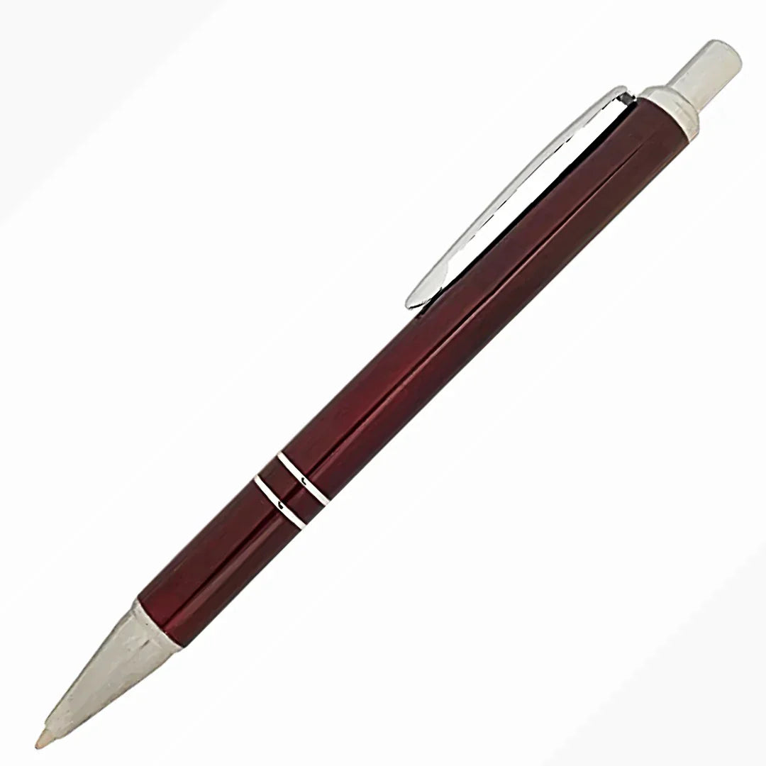 Sininen ja punainen kynä kaiverettunalla kromivärillä.